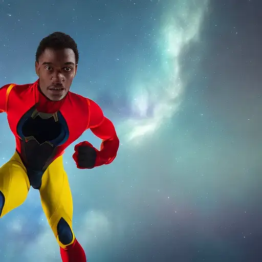 over 2 years ago a blackman in a red and yellow superhero suit hold two sprays in front the midnight sky standing like a superhero zoz021 0 27